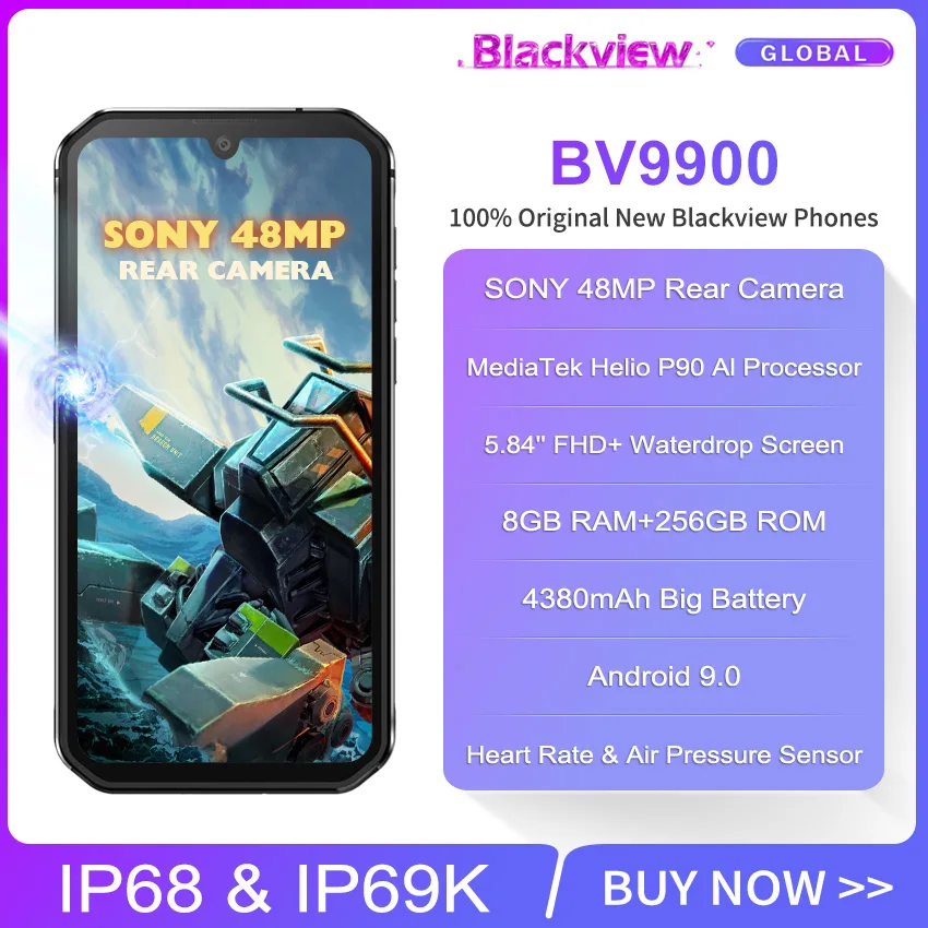 | Blackview BV9900 Helio P90 Octa Core 8GB 256GB 5.84'' FHD+ IP68 Waterproof Rugged Smartphone 4380mAh Android 9.0 Mobile Phone |