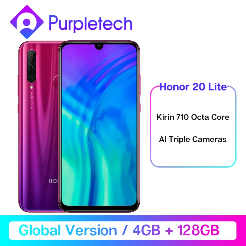 | In Stock Global Version Honor 20 Lite 4GB 128GB Kirin 710 Octa Core Smartphone Front 32MP Face ID 24MP Rear Camera Google play |