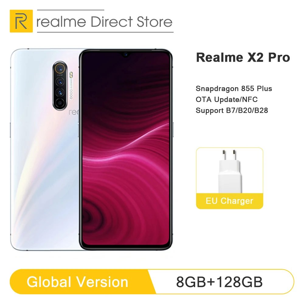 | Global Version realme X2 Pro 8GB 128GB Moblie Phone Snapdragon 855 Plus 64MP Quad Camera NFC 6.5Cellphone VOOC 50W Fast Charger |