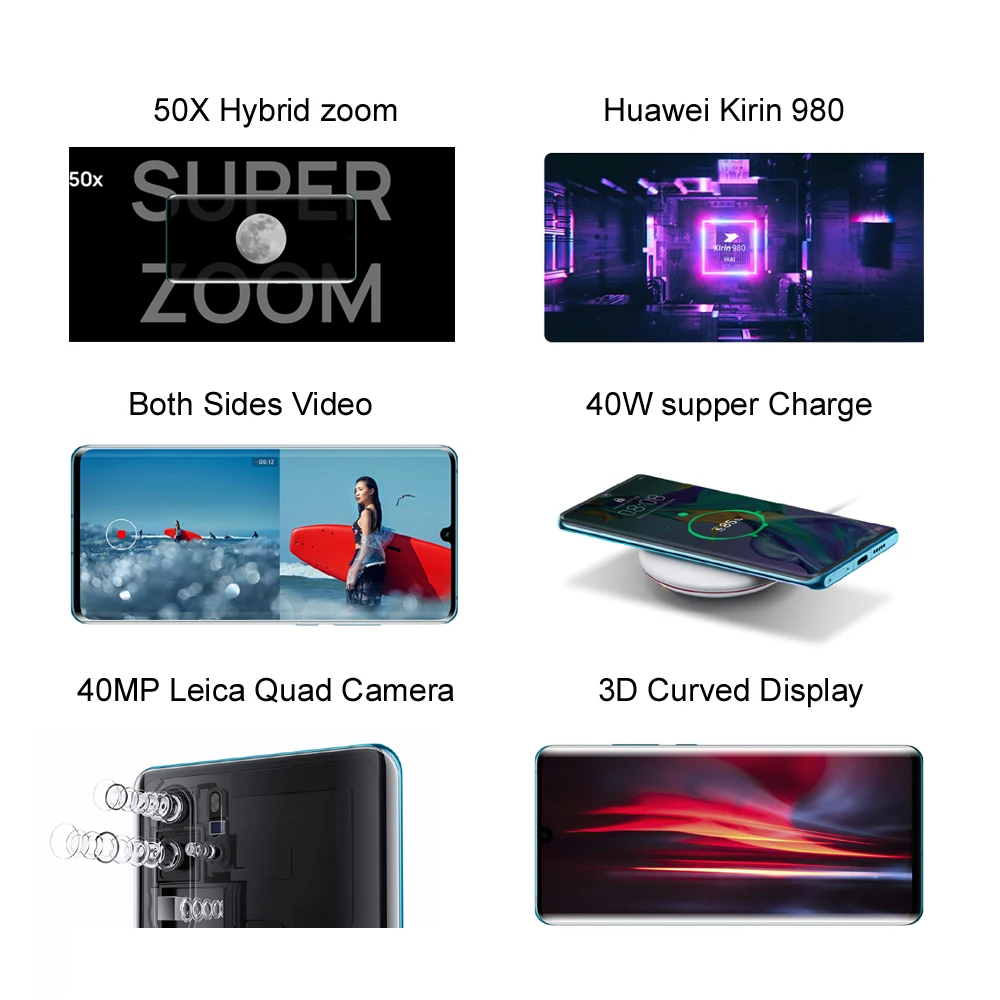 | Huawei P30 Pro Smart phone Global Version 8GB 256GB 40MP Quad Camera Mobile phone 10x zoom 6.47''Screen Kirin 980 Smartphone |