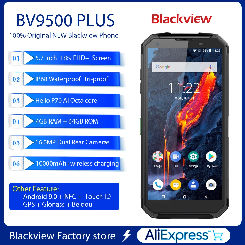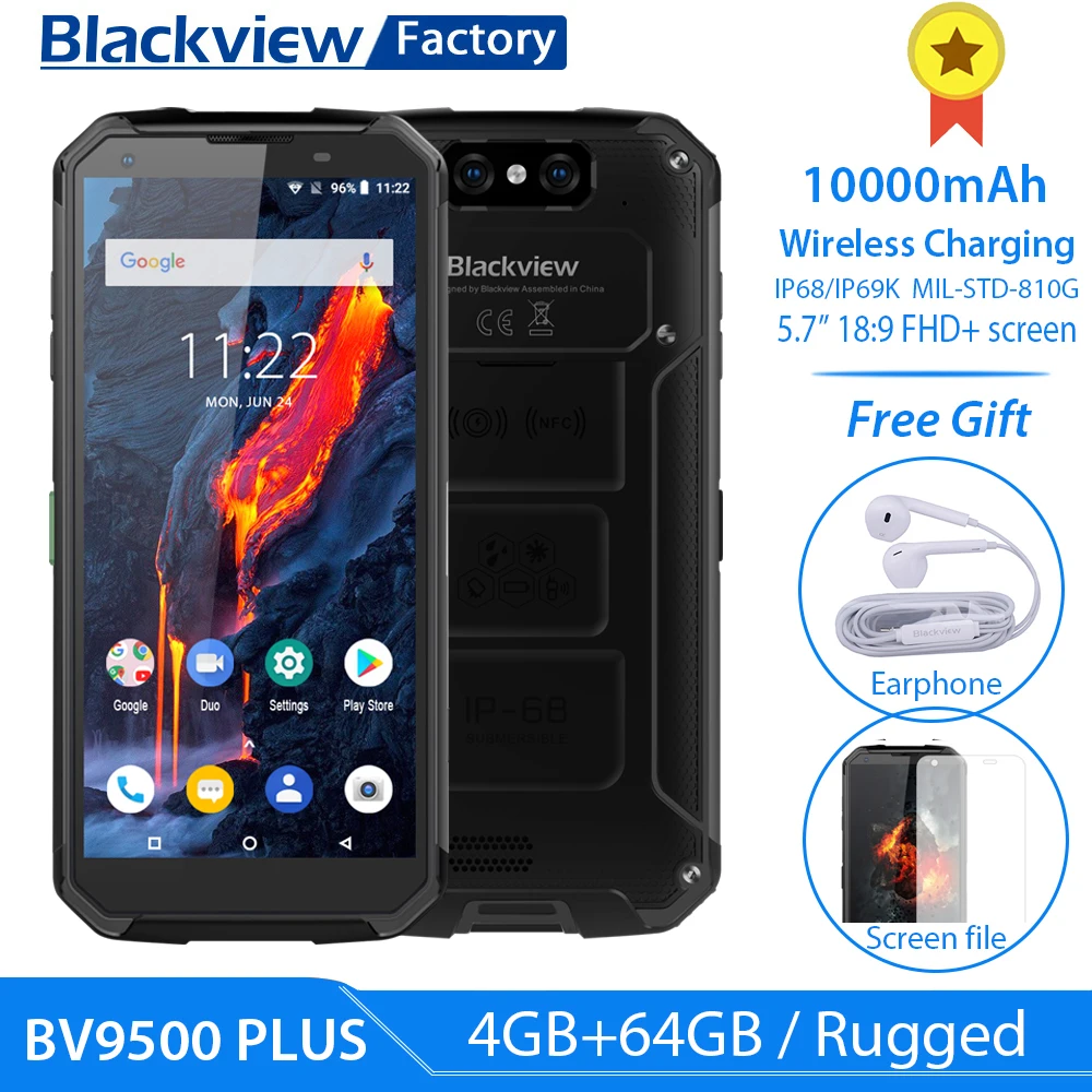| Blackview BV9500 Plus Helio P70 Octa Core 10000mAh Smartphone IP68 waterproof 4GB+64GB 5.718:9 FHD NFC mobile phone Android 9.0 |