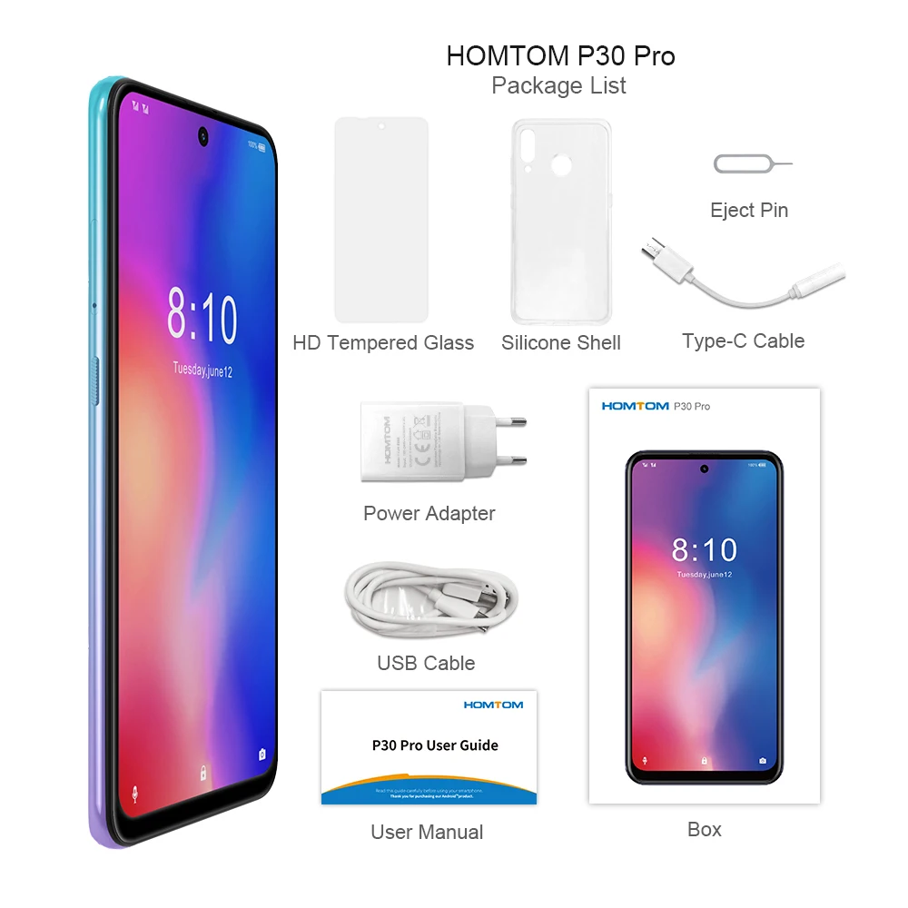 | Original HOMTOM P30 pro Android 9.0 MTK6763 Octa Core 4GB 64GB Glass case Smartphone 6.41inch 4000mAh 4G FDD-LTE Mobile Phone |