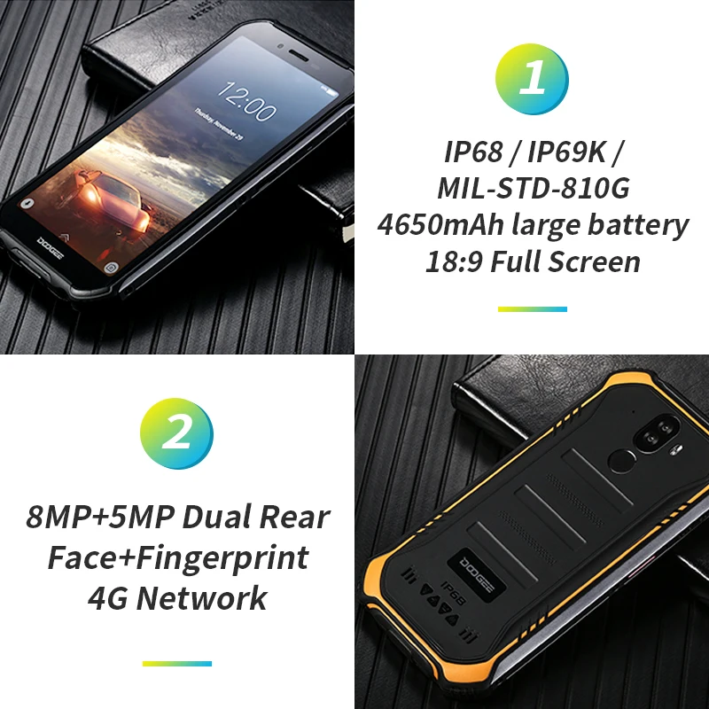 | Doogee S40 5.5Screen Waterproof 3GB RAM 32GB ROM Smartphone MTK6739 Quad Core Android 9.0 4650mAh 8.0MP NFC 4G LTE Mobile Phone |