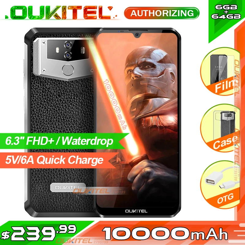 | OUKITEL K12 6.3'' Waterdrop 1080*2340 6GB 64GB Android 9.0 Smartphone Face ID 10000mAh 5V/6A Quick Charge OTG NFC Mobile Phone |