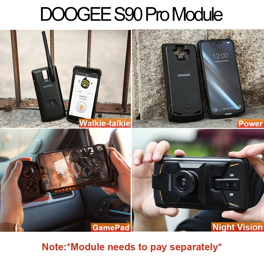 | IP68 DOOGEE S90 Pro Modular Rugged Mobile Phone Helio P70 Octa Core 6GB 128GB 6.18inch Display 12V2A 5050mAh 16MP+8MP Android 9 |