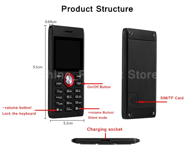| Melrose M18 Mini Card Phone Ultra-thin Student Cell phones With Vibration GSM MP3 Recorder and Bluetooth phone PK Melrose S10 |