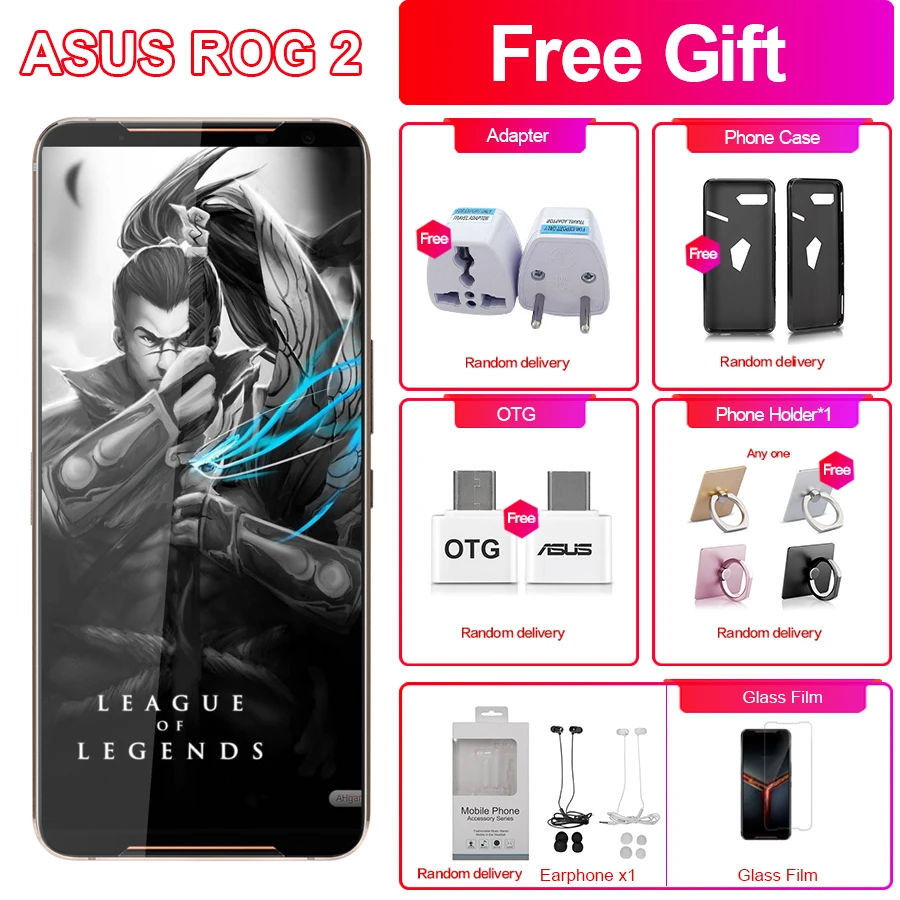 | Brand New Asus ROG Phone 2 6.59 8GB RAM 128GB ROM Game Phone Snapdragon 855+ NFC ROG Phone II ZS660KL 6000mAh LTE Mobile Phone |