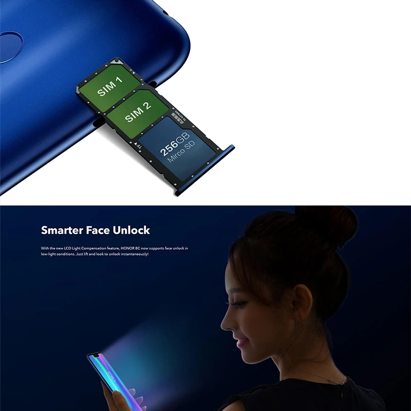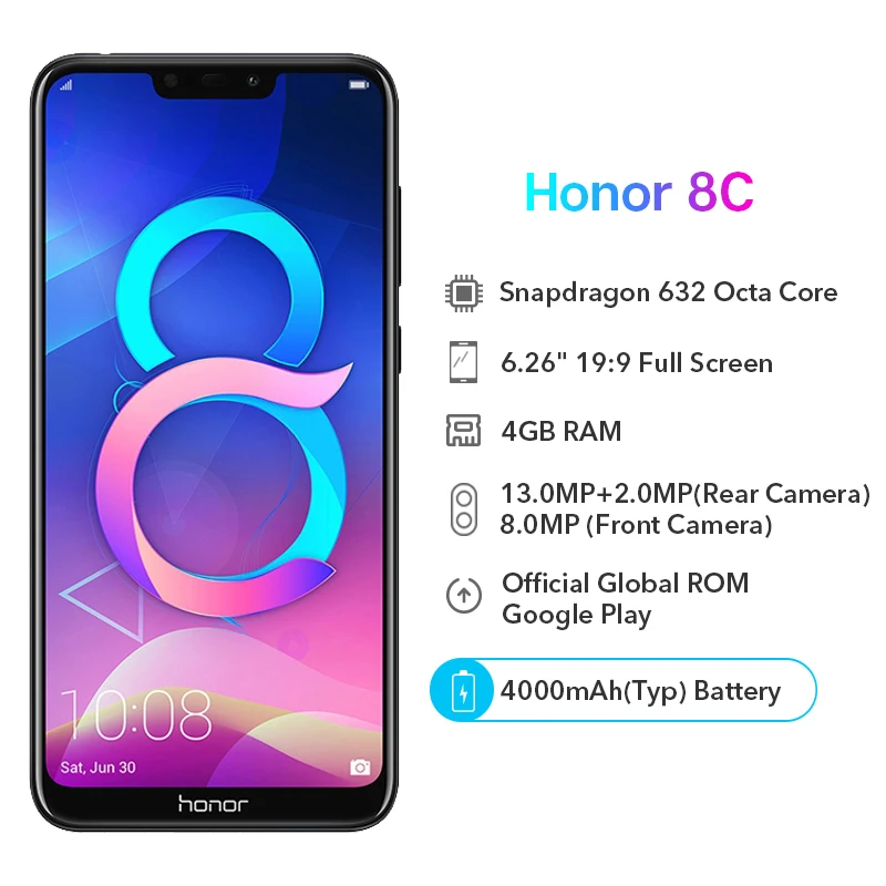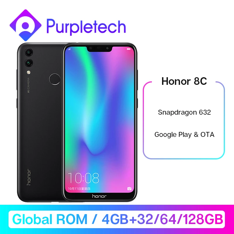 | Honor 8C 8 C Smartphone Google Play Snapdragon 632 Octa Core 3 slot Face ID 6.26 inch Front 8.0MP Dual Rear Camera 4000mAh |