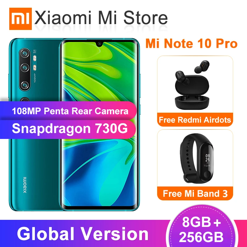 | Global Version Xiaomi Mi Note 10 pro 8GB 256GB Smartphone 108MP Penta Camera Snapdragon 730G 6.47 Curved Screen 5260mAh Battery |