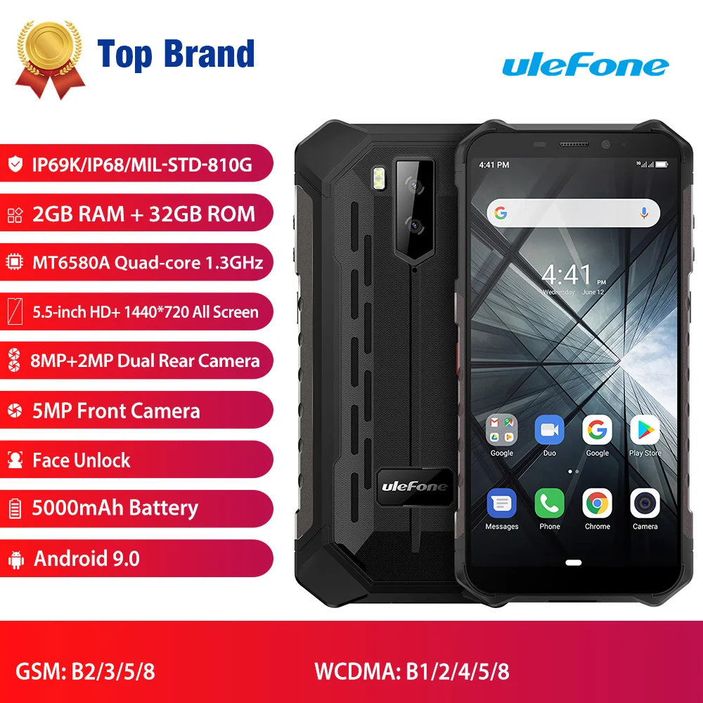 | Ulefone Armor X3 Rugged Smartphone Android 9.0 IP68 Android 5.5 2GB 32GB 5000mAh 3G Rugged Cell Phone Mobile Phone Android |