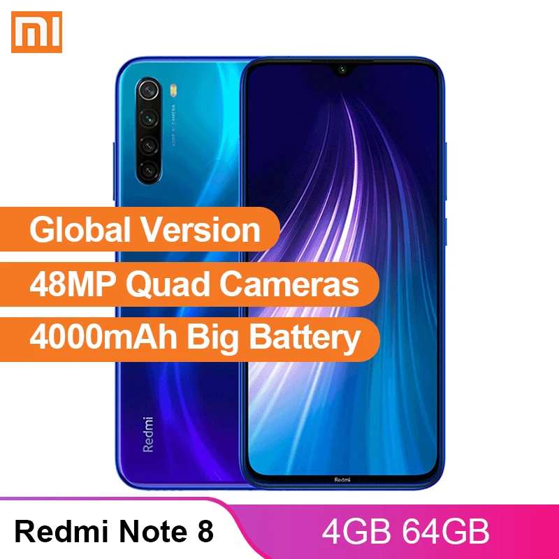 | Global Version Xiaomi Redmi Note 8 4GB 64GB Smartphone 48MP Quad Cameras Snapdragon 665 4000mAh 18W QC 3.0 Mobile Phone |