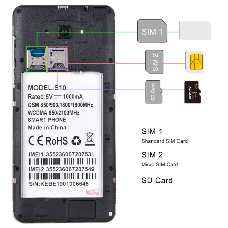 | XGODY S10 3G Smartphone 1GB RAM 4GB ROM Android 8.1 5.5 18:9 Full Screen Mobile Phone Dual SIM 5MP Camera 2500mAh Cell Phones |