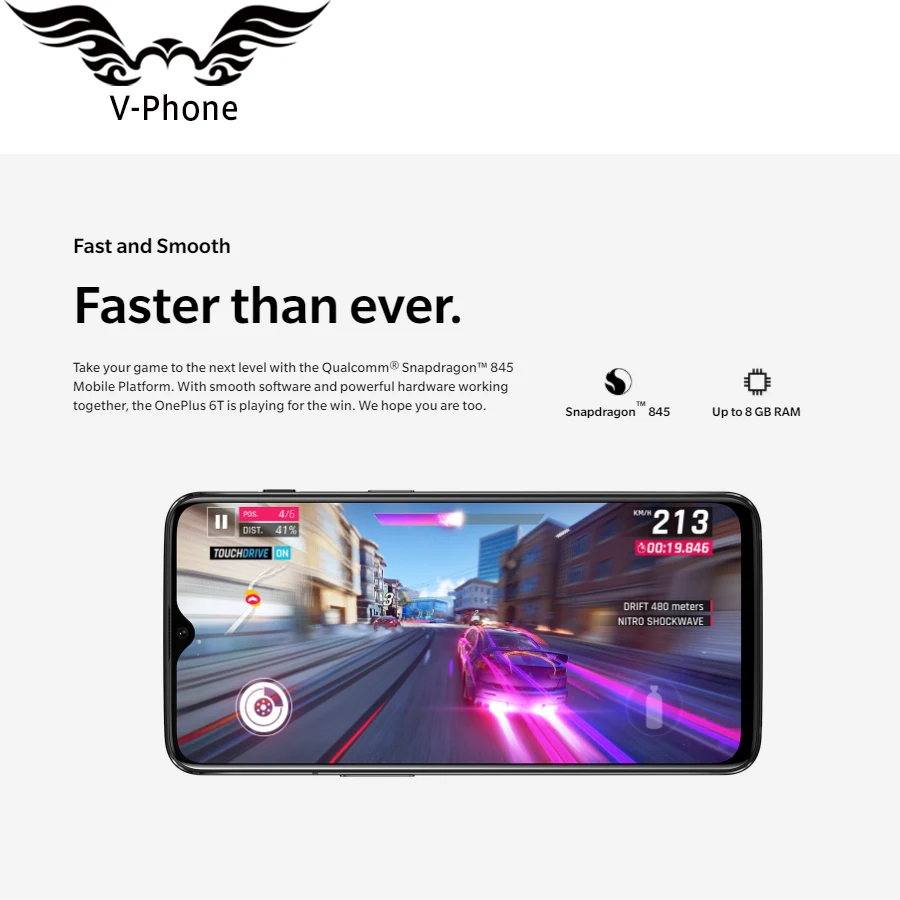 | Brand New Original Oneplus 6T 128GB Mobile Phone Snapdragon 845 Octa Core 6.41 Dual Camera Screen Unlock NFC Android Smartphone |