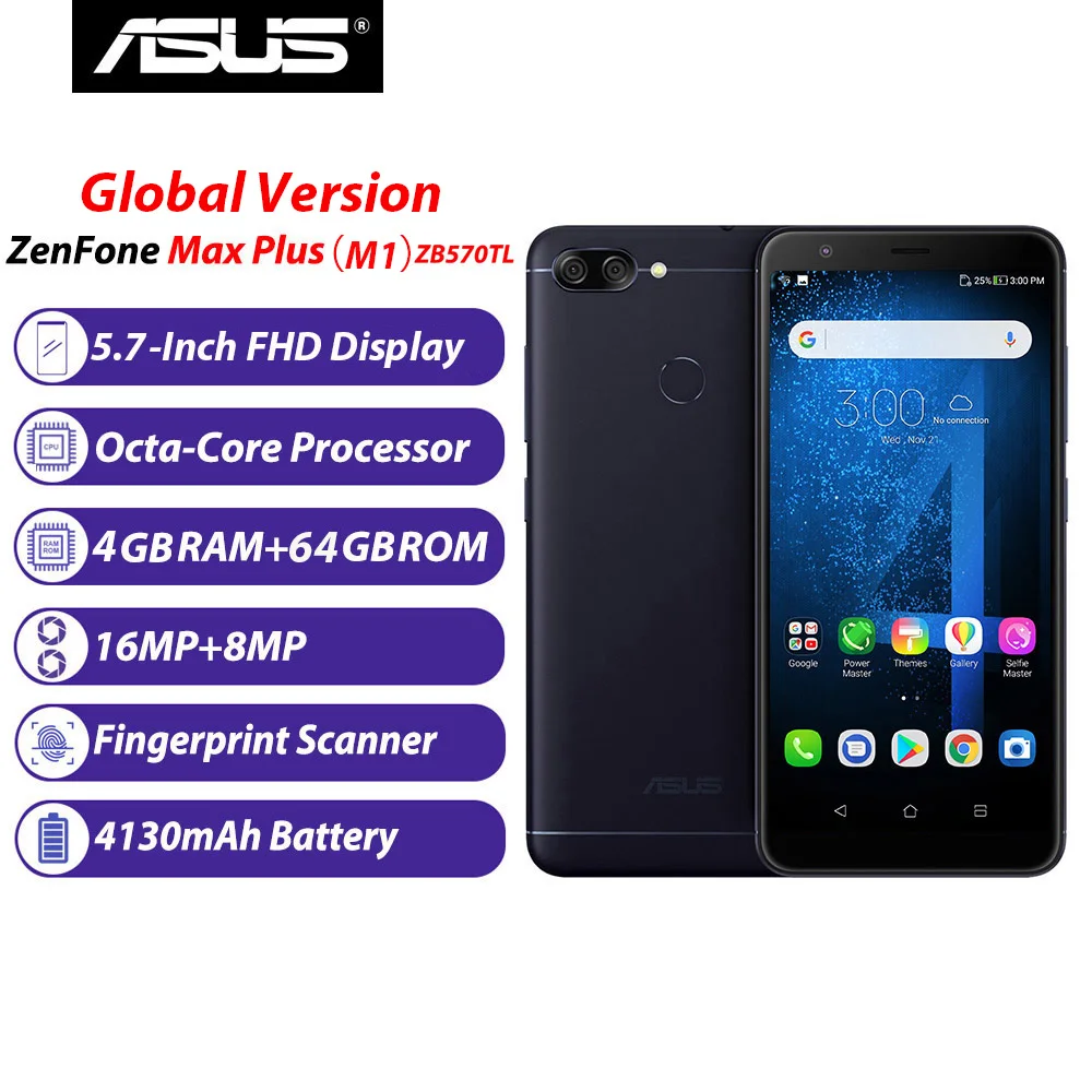 | Global Version ASUS ZenFone Max Plus M1 4GB 64GB 5.7inch Octa-core 16MP 8MP 4130mAh Face ID 4G Unlocked Smartphone |