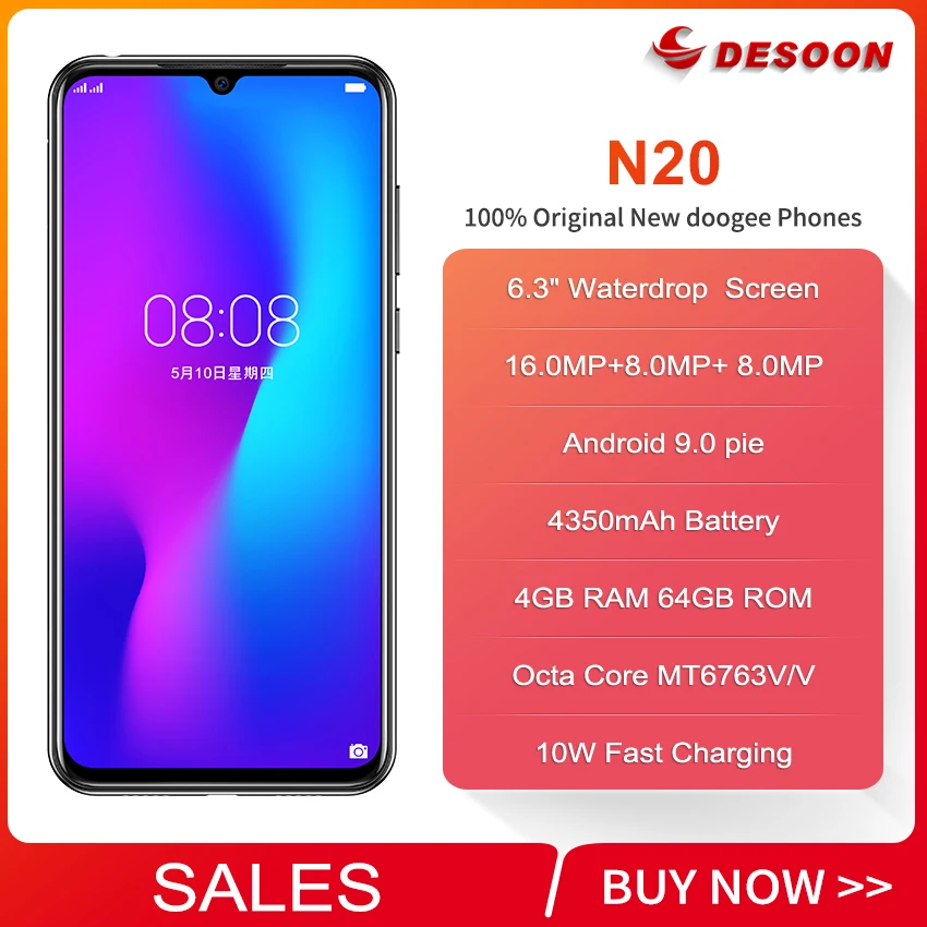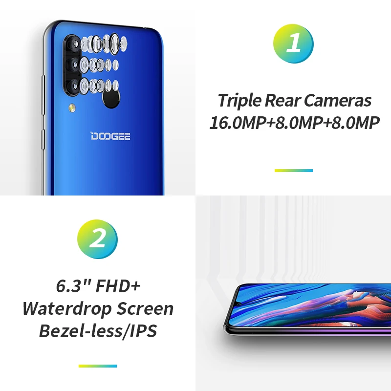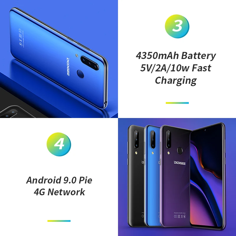 | Doogee N20 6.3 Inch Waterdrop Screen Smartphone 4GB RAM 64GB ROM Octa core 4350mAh 16MP Triple Rear Cameras 4G lTE Cellphone |