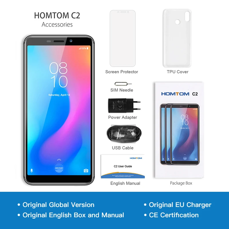 | Golbal Version HOMTOM C2 5.5inch 2GB 16GB 3000mAh Face ID 4G-LTE Mobile Cell Phone Android 8.1 13MP Dual Rear Cameras Smartphone |