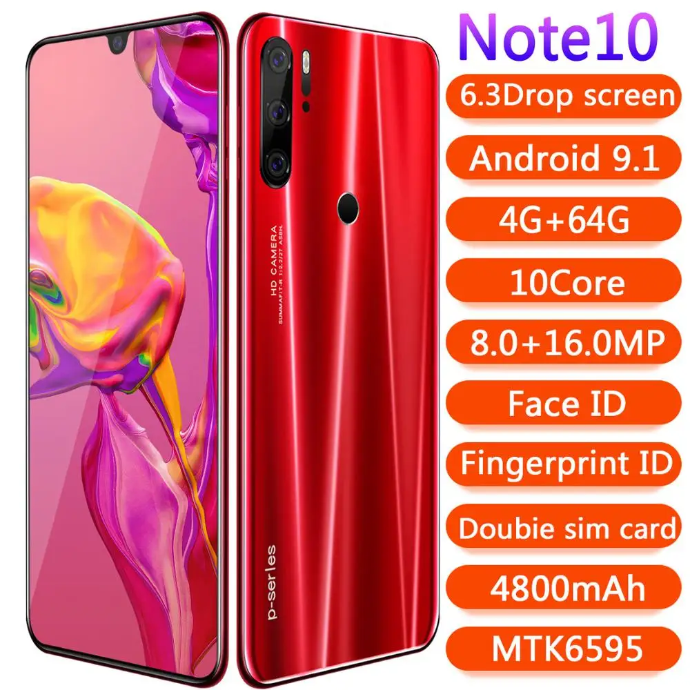 | SAILF Note10 Plus Android 9.0 Octa Core Mobile Phone 6.3' FHD+ 16MP Triple Camera 4G RAM 64GB ROM Smartphone gsm wcdma unlocked |