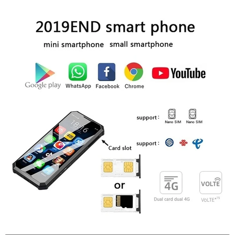 | Super Mini Melrose 2019 END Smartphone 1GB/2GB 8GB/32GB 4G Lte 3.46'' MTK6739V Quad Core Android 8.1 Fingerprint Mobile Phone |