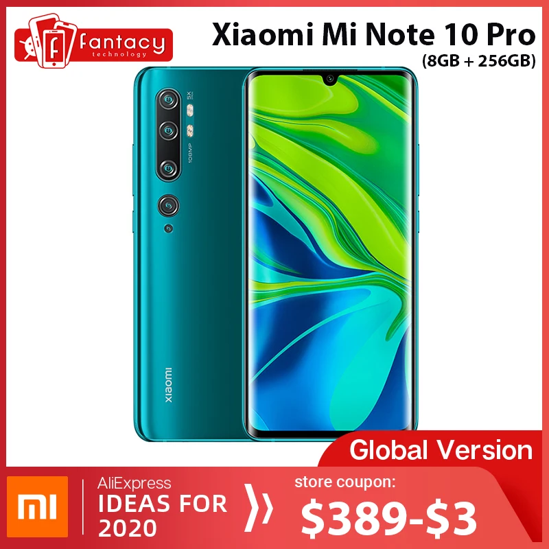 | Global Version Xiaomi Mi Note 10 Pro 8GB RAM 256GB ROM 108MP Penta Camera Snapdragon 730G Octacore Cellphone 6.47 Curved 5260mAh |