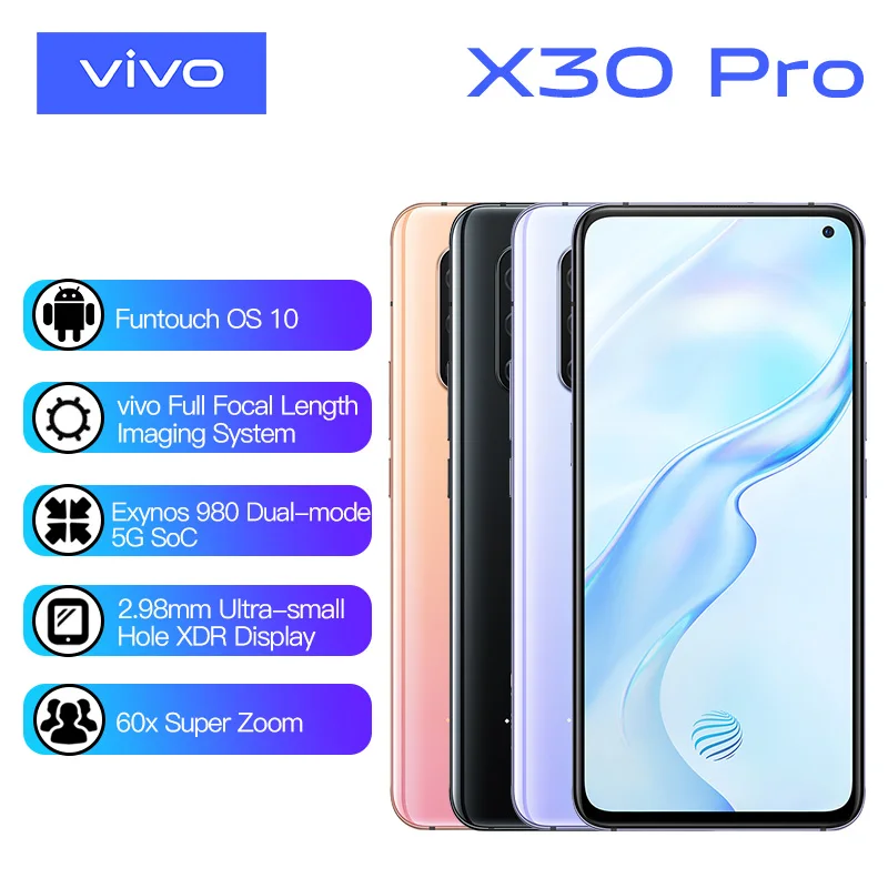 | Original vivo X30 Pro 5G SmartPhone 6.44 Exynos 980 8G 128G Android 9.0 64.0MP 90HZ 44W Fast Charger 60x Zoom Cell Phone |