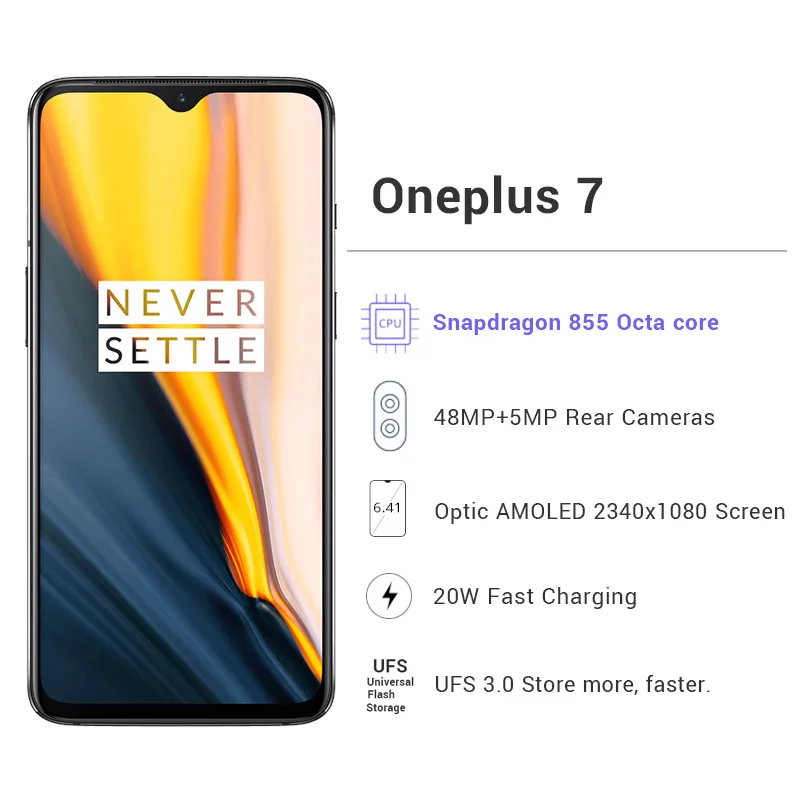 | Global ROM Oneplus 7 8GB 256GB Smartphone Snapdragon 855 Octa Core 6.41 AMOLED 48MP+16MP Dual Cameras NFC 3700mAh Mobile Phone |