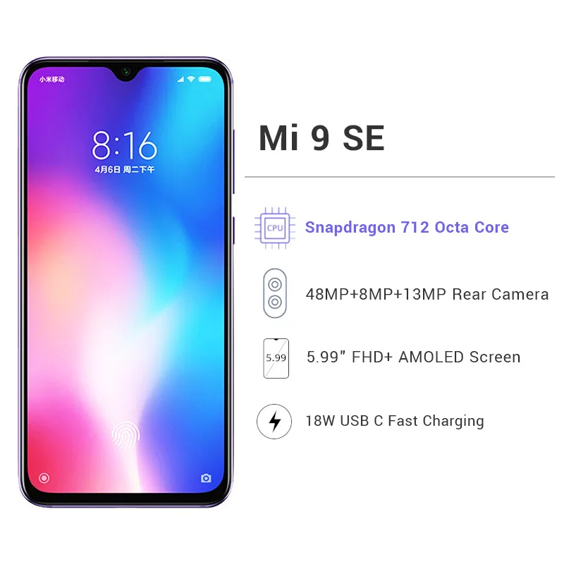 | Global ROM Original Xiaomi Mi 9 SE 6GB 128GB Smartphone 5.97 AMOLED Screen Mi9 SE Snapdragon 712 Octa Core 48MP Triple Camera |