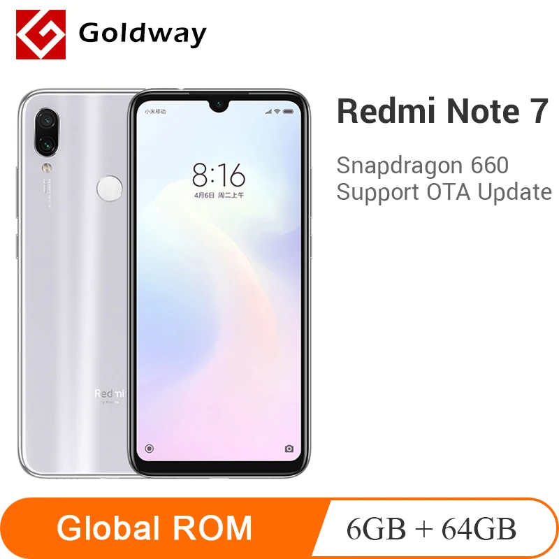 | Global ROM Xiaomi Redmi Note 7 6GB RAM 64GB ROM Mobile Phone Snapdragon 660 Octa Core 48MP Dual Camera 4000mAh 6.3Full Screen |