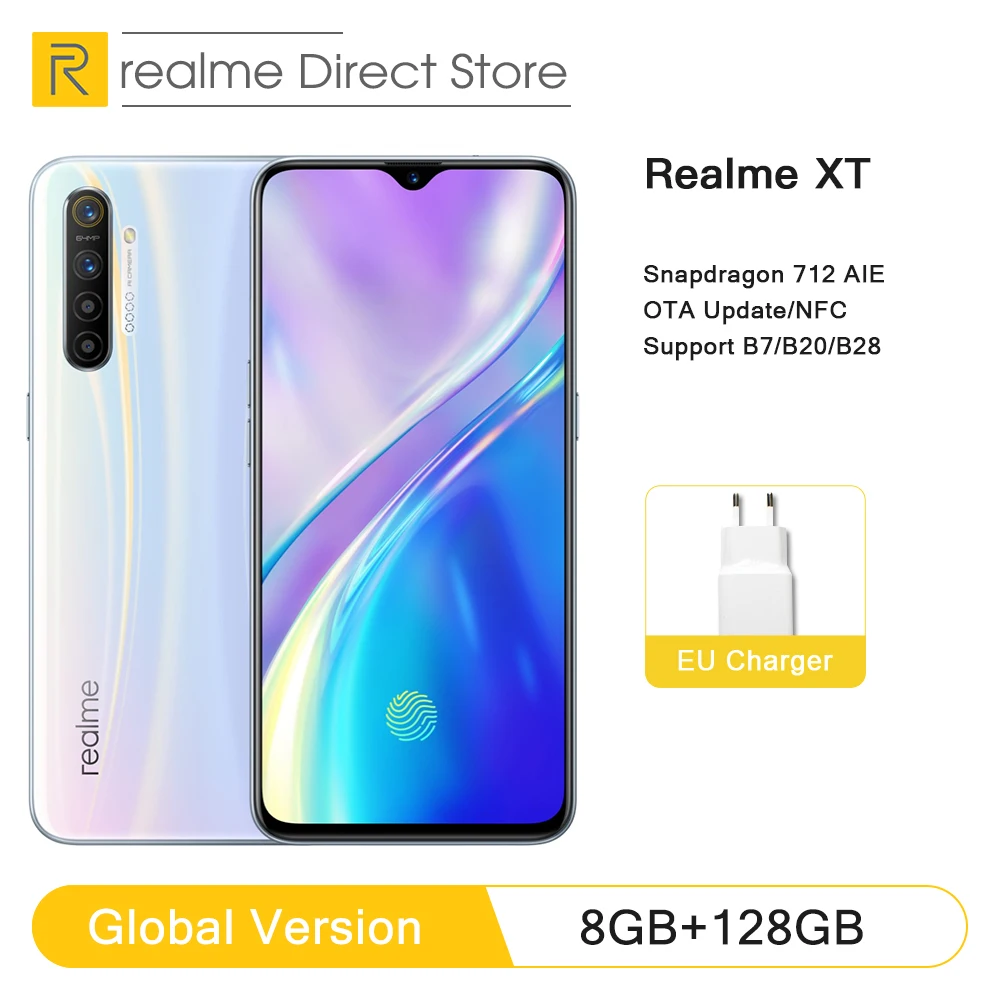 | Global Version Realme XT 8GB RAM 128GB ROM NFC Mobile Phone Snapdragon 712 AIE 64MP Quad Camera 4000mAh Fast Charge Smartphone |