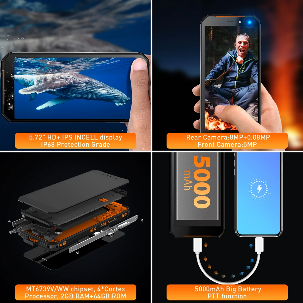 | LEAGOO XRover C IP68 NFC OTG Fingerprint Face ID 4G 5.72 IPS Smartphone 5000mAh 2GB 16GB 13MP Dual Rear Cams Mobile Phone |
