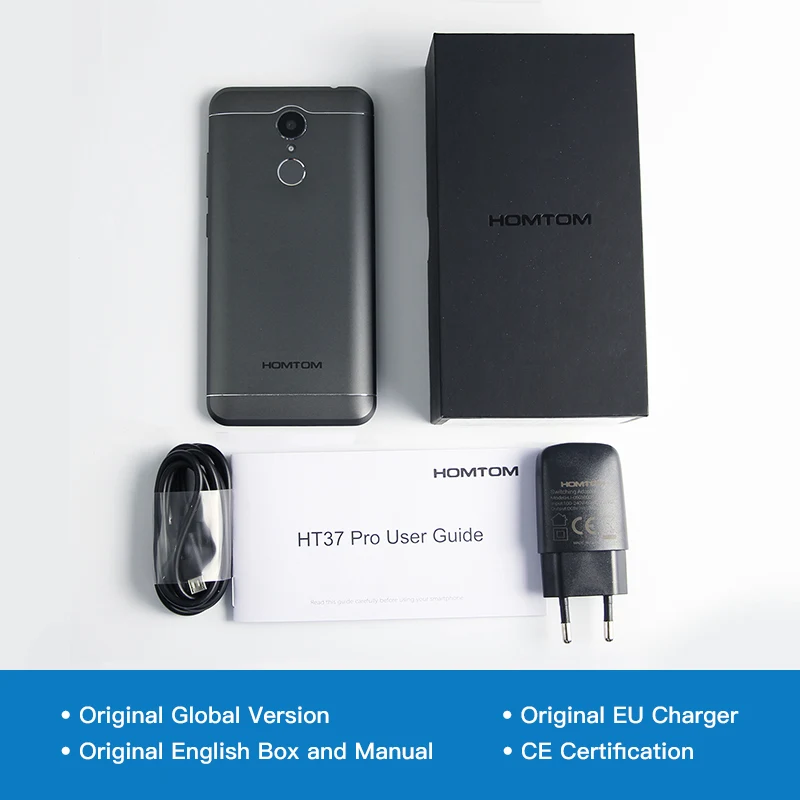 | Homtom HT37 Pro Smartphone 4G Double Speaker MTK6737 5.0 Inch HD Android 7.0 3GB+32GB 13MP 3000mAh Fingerprint ID Mobile Phone |