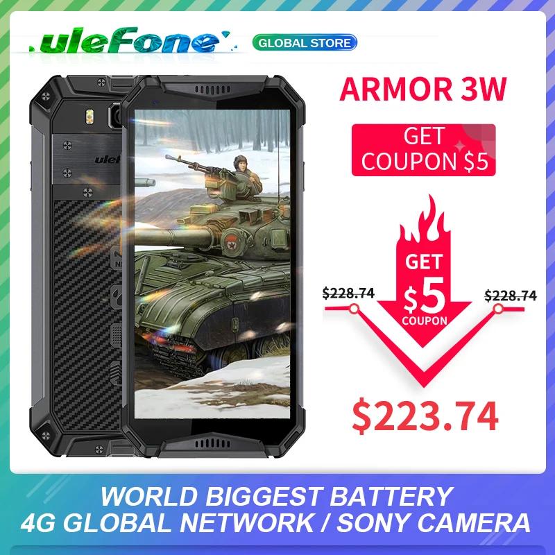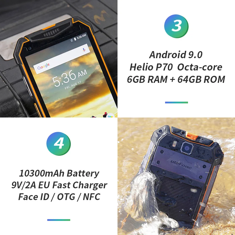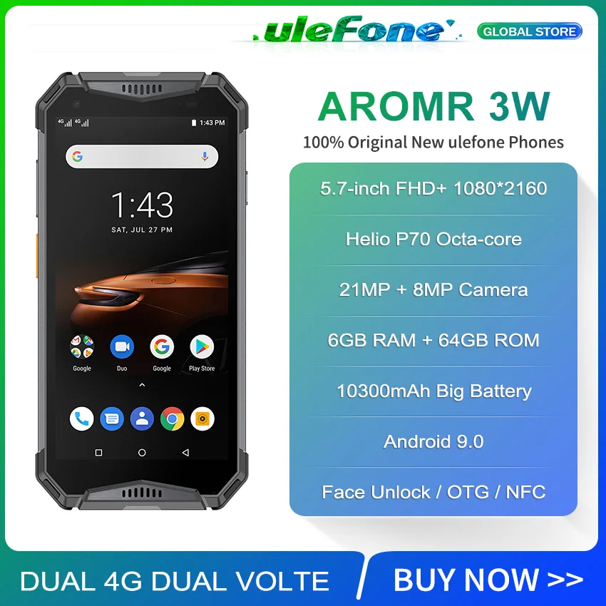 | Ulefone Armor 3W IP68 Waterproof Mobile Phone 10300mAh 5.7 FHD+ Octa Core 6GB 64GB helio P70 Android9 Global Version Smartphone |
